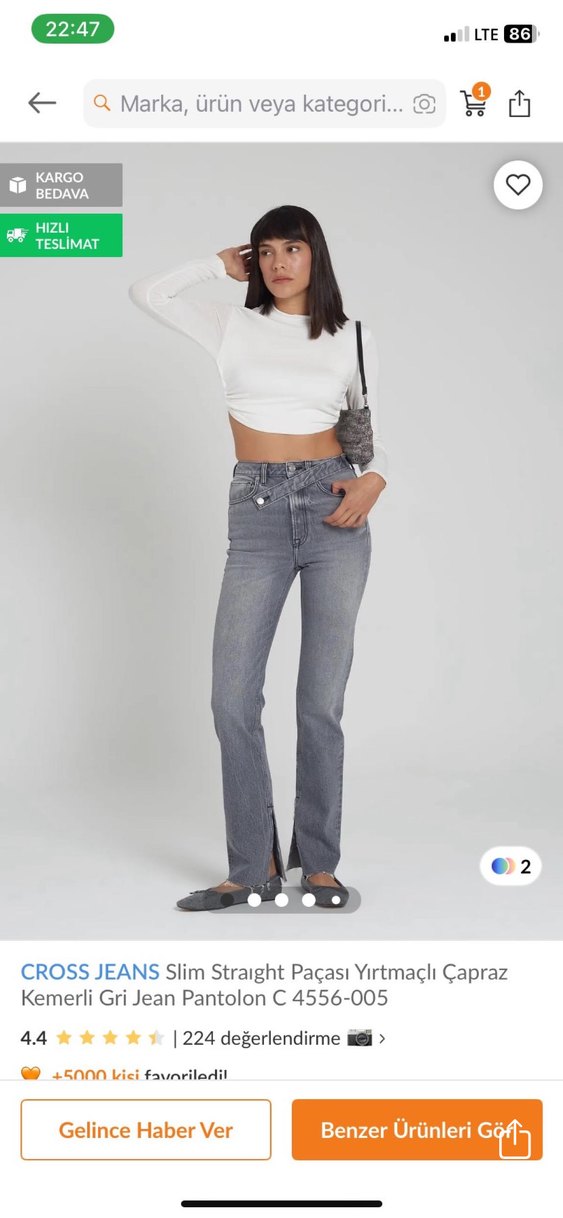 Cross jean çok satan modelden. Kalıbı çok güzel. 25/30 beden bana dar geldiği için satıyorum dar kalıp. Gri renkte, yırtmaçlı ve çapraz kemer detaylı slim straight kesim kot pantolon, rahat denim kumaştan günlük kullanıma uygun.