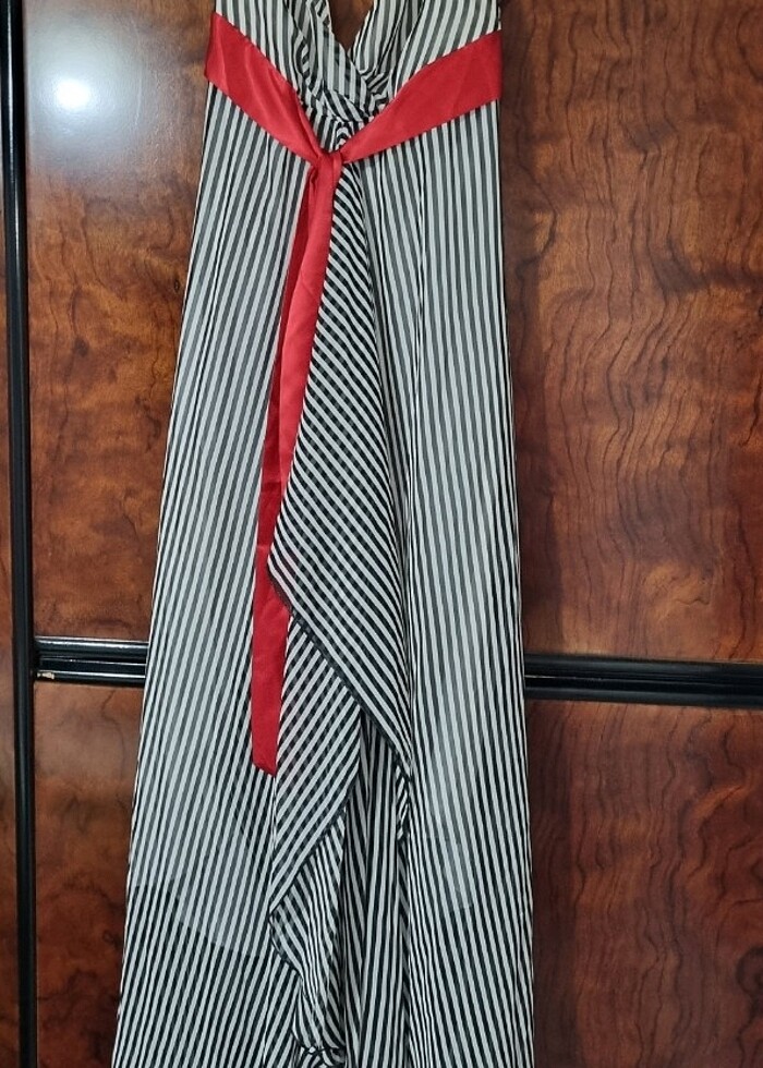 Etikette 1 beden, 36 bedene kadar uyumludur. On tarafı asimetrik pencere yurtmacli üstü şifon icinde saten astarı bulunmaktadir, sadece 1 kez kullanıldı