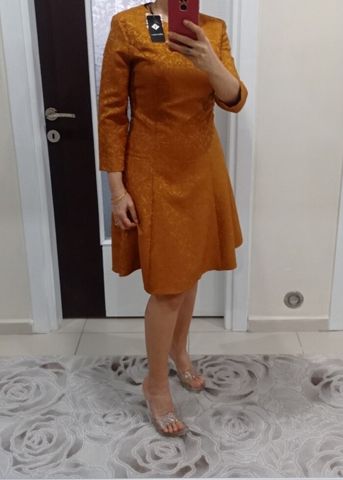 Yeni, etiketli harika bir elbise. Beli incecik gösteren hanım hanımcık çok şıktır. Astarlıdır. Herhangi bir defosu yoktur. Kalın tok kumaştır. Sıfır üründür.