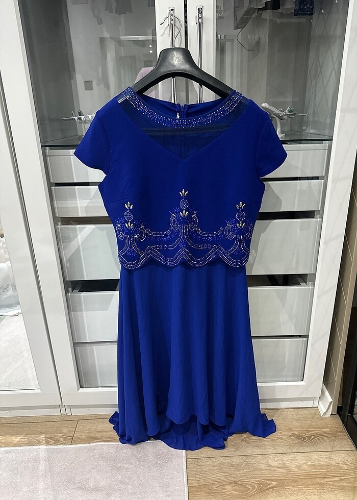 Sözümde 2 saat giydim, kuru temizlemesi yapıldı Tasarım elbise sorunsuzdur. Altı şifon Saks mavisi taşlı elbise