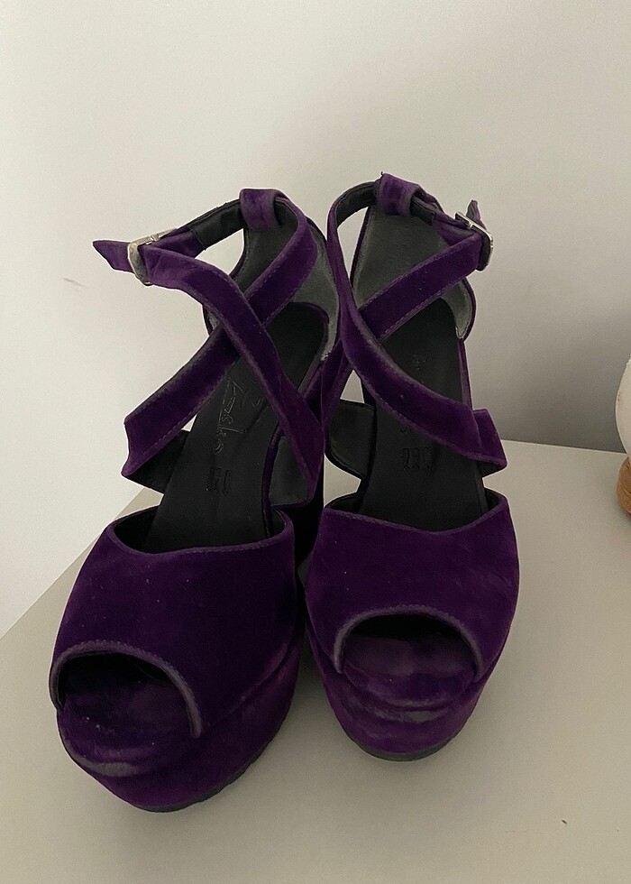 Rengi modeli oldukça güzel gün boyu ayağınızda kalsa Bile rahatsız etmeyen ayakkabı rengi fotoda göründüğü gibi kadıfe mor sorunsuz tertemiz