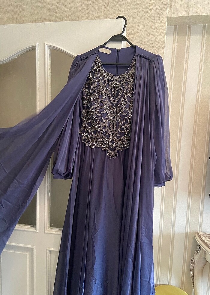 Bir kez düğünde giyildi.İndigo mavisi abiye.Çok şık ve gümüş taşlı