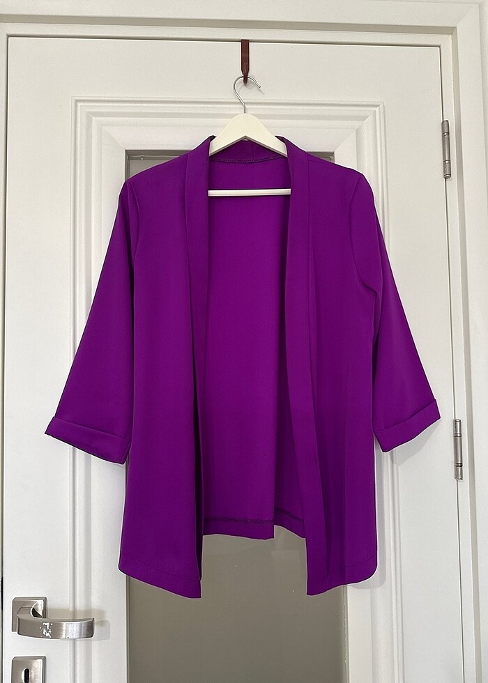 Tertemiz butik ürünü olup şal yaka ve saten kullanımı rahat yarım kollu tunik ceket
