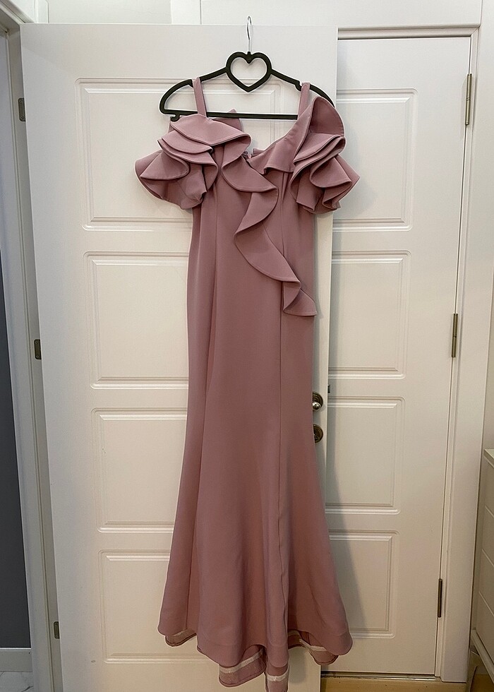 Nişanı da giydim bir kere tertemiz hiçbir sorunu yok üzerinde çok şık duruyor göğüs detayı kol detayı ve sırt detayı var hafif balık bir elbise