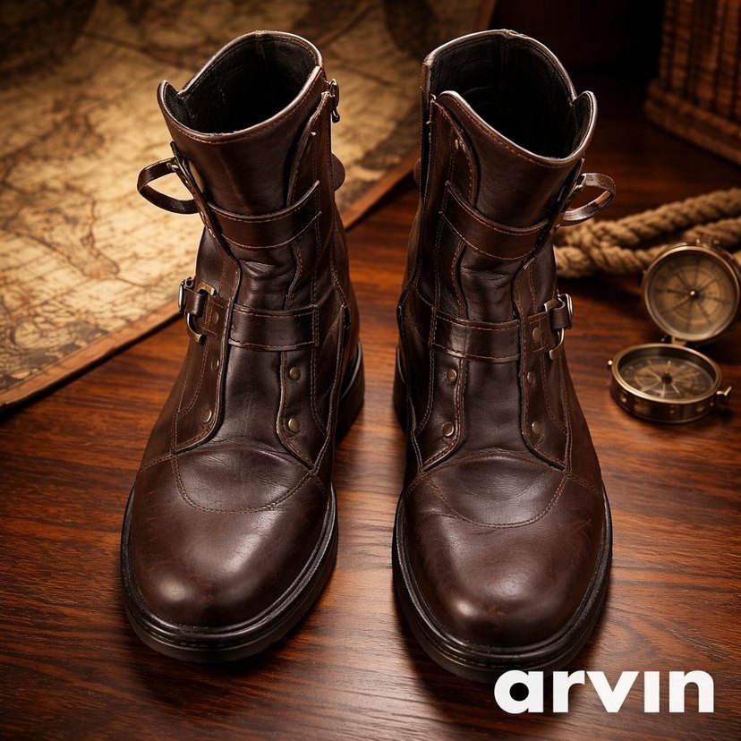 Parlak kahverengi deri erkek biker botları, tokalı kayışlar ve desen içermeyen tasarıma sahiptir. Yan fermuarlı, klasik stile uygundur. Taban 28.5cm dir.