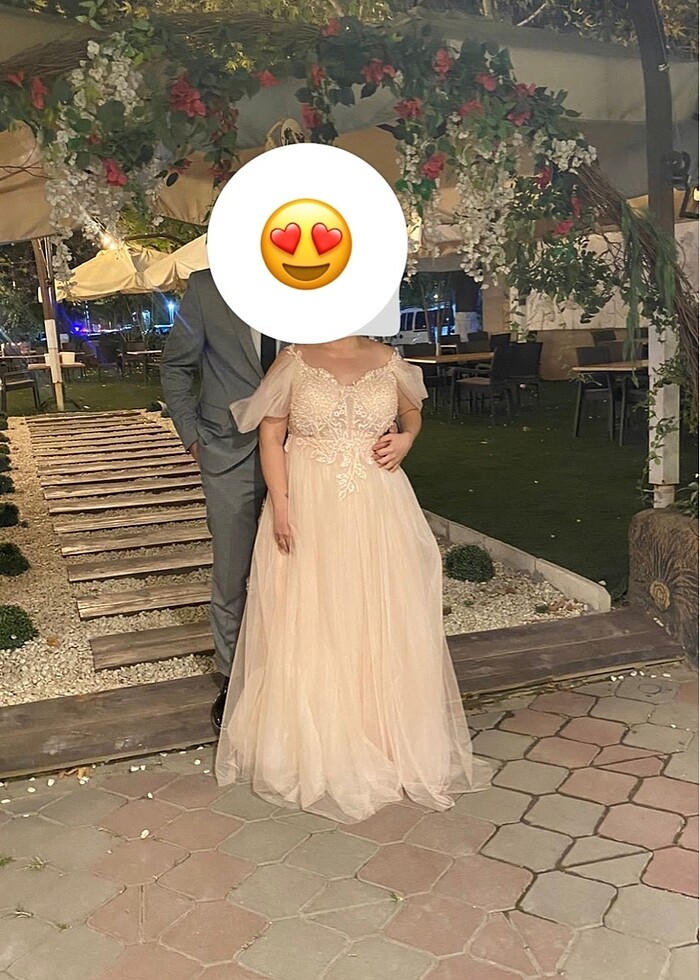 Nişanımda 2 saat giydim sadece hiç bir sorunu yok helen model askısı ve toz torbasıyla gönderilecektir.