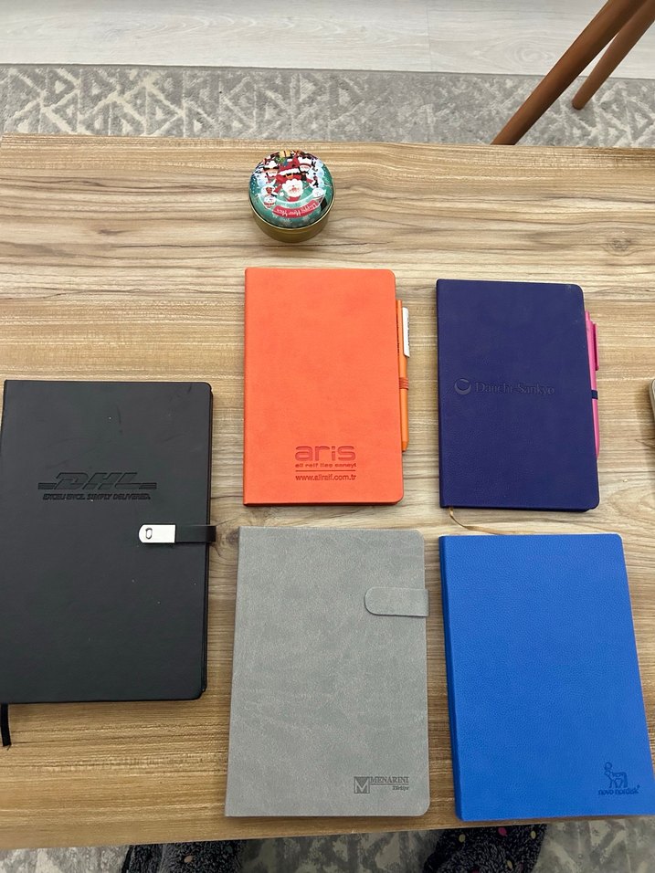 Farklı sıfır ajandalar… Tekli alımda tanesi 100₺ Çoklu alımda tanesi 75₺ Hepsi sıfır. Yanında mutlaka kalem de gönderilecek… Sağ alt köşedeki daha açık olan mavi ajandadan iki adet mevcut…
