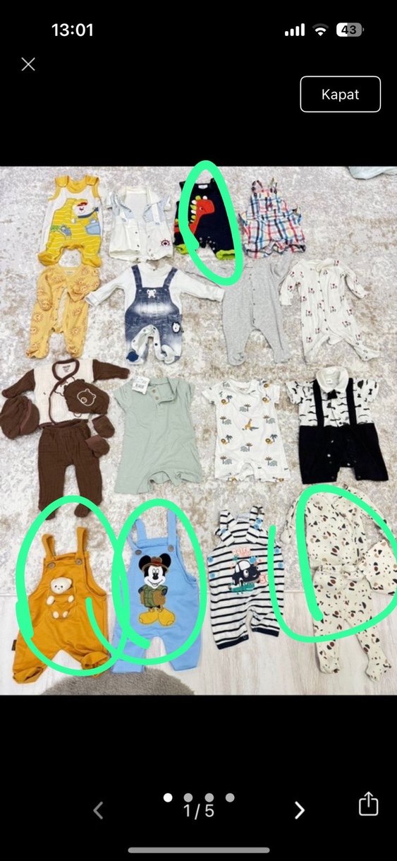 Çeşitli renklerde, uzun kollu ve straplez tasarımlı çoklu örme bebek erkek kıyafet seti. Etiketli de var kullanılmış da var. Alacağınız ürünleri fiyat sorun kontrol edip göndereyim. Hiçbirinde kusur yok. Çoklu alımlarda çok iyi fiyatlar ile yardımcı olacagım. Resimlerde ürünler bazıları defolu bazıları yeni. Hepsi toplam fiyattır. Yeşil daire içine aldığım ürünler hariçtir onlar satıldı. Diğerleri satılık
