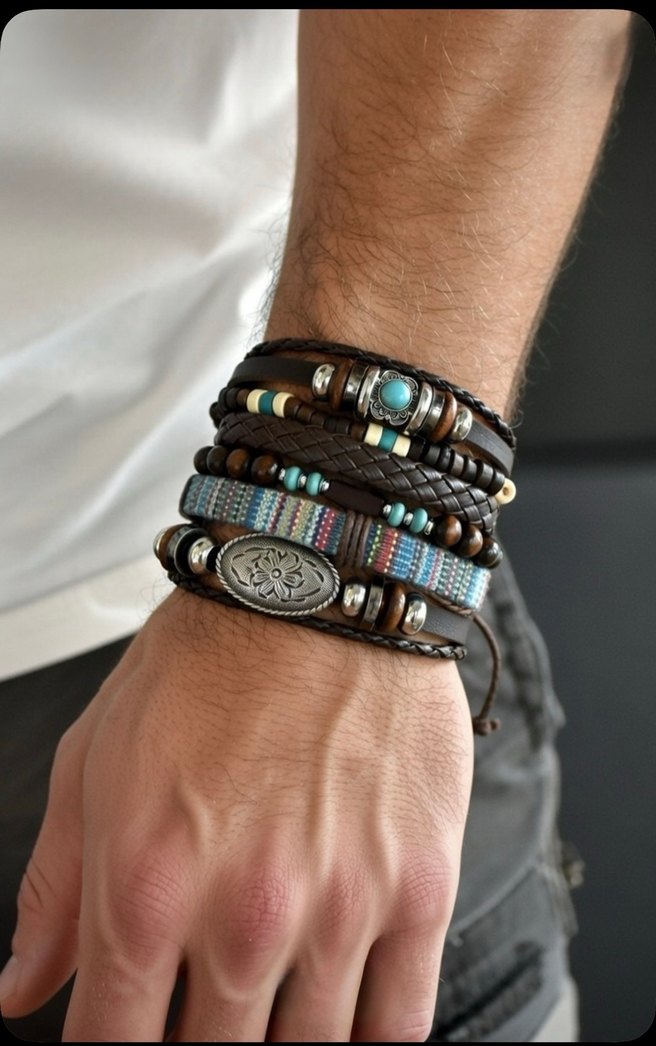 Çoklu Katmanlı Bohem Erkek Bileklik Seti