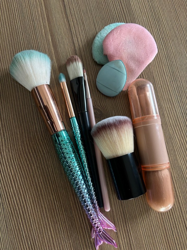 Pastel renkli yumuşak kıllı makyaj fırçaları ve farklı şekillerde uygulama için set. Ayrıca makyaj temizleme süngerleri ve pedleri içerir. ️