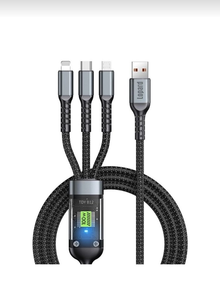 şarj kablosu üç uçlu, örgü yapılı ve güç durumunu gösteren dijital ekranlı şarj kablosu. ⚡