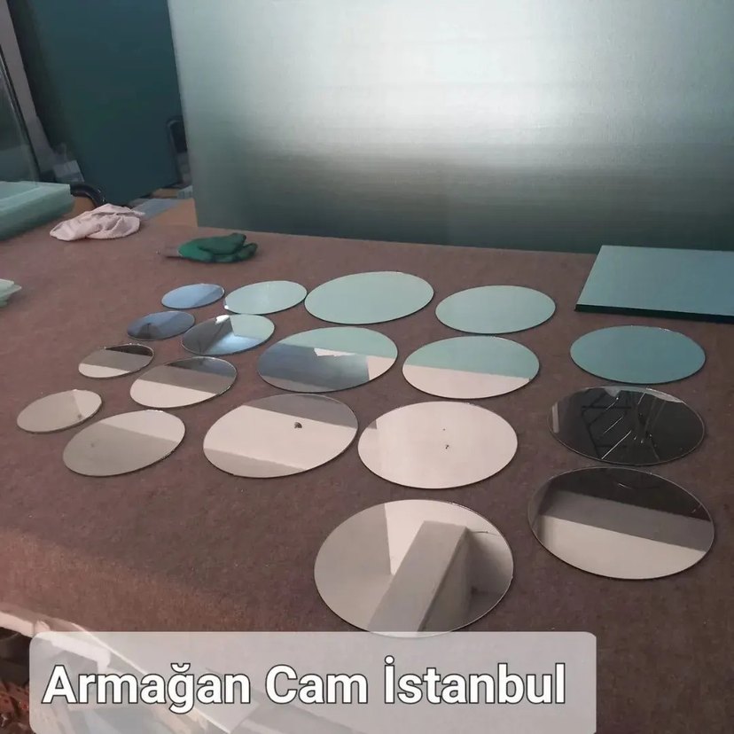 Nagan Cam İstanbul tarafından üretilmiş, farklı boyutlarda çoklu yuvarlak aynalar seti. Dekoratif kullanım için uygundur.