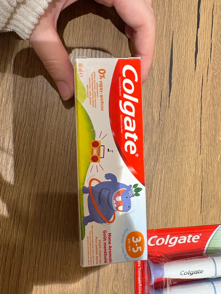 3-5 yaş çocuklar için Colgate diş macunu, şekersiz formül ve eğlenceli karakterli ambalajla sunulur.