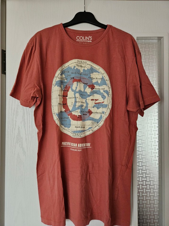 Colin's markalı kiremit rengi, yuvarlak yaka ve kısa kollu pamuklu tişört. Rahat kesim, oversize olarak da kullanılabilir. Ben o şekilde kullandım. Az kullanıldı, tertemiz.