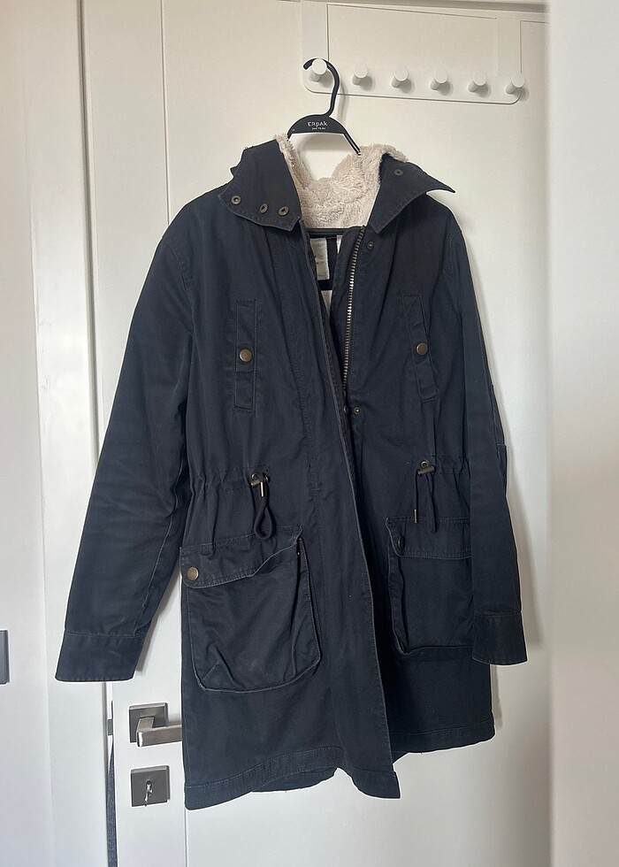 Herhangi bir defosu yoktur. Renk:lacivert Beden: M İçindeki kürk fermuarla bağlı olduğu için mevsime göre çıkarılarak da kullanılabilir