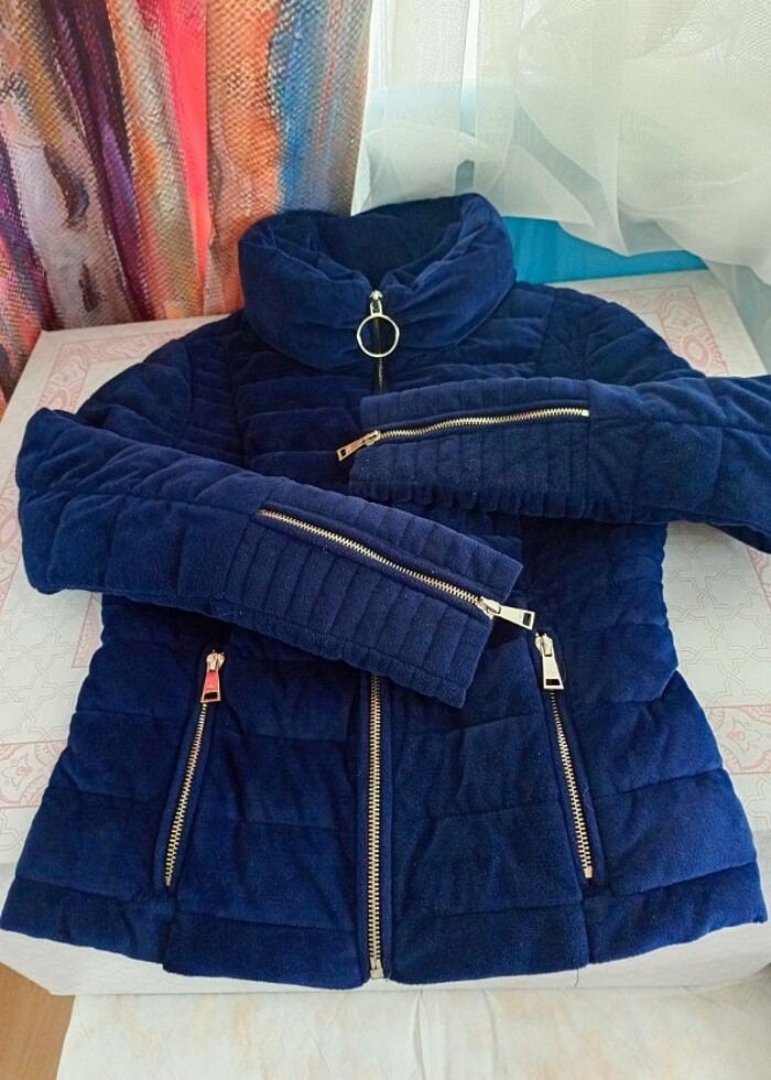 Dar kalıp sevenlere harika bir mont kadife lacivert renk sıfır tertemiz duruşu mükemmel sıçaçık bir mont çok soğukta tişörtle bile sıçak tutar. #colins#mont#kadın