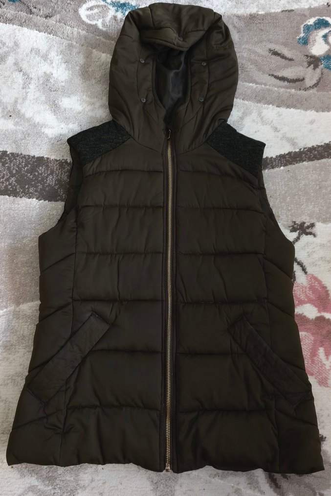 Colin's marka s beden şişme kadın yelek mont. dikkatli kullanılmıştır. kapüşonlu, haki renk fermuarlı yelek.