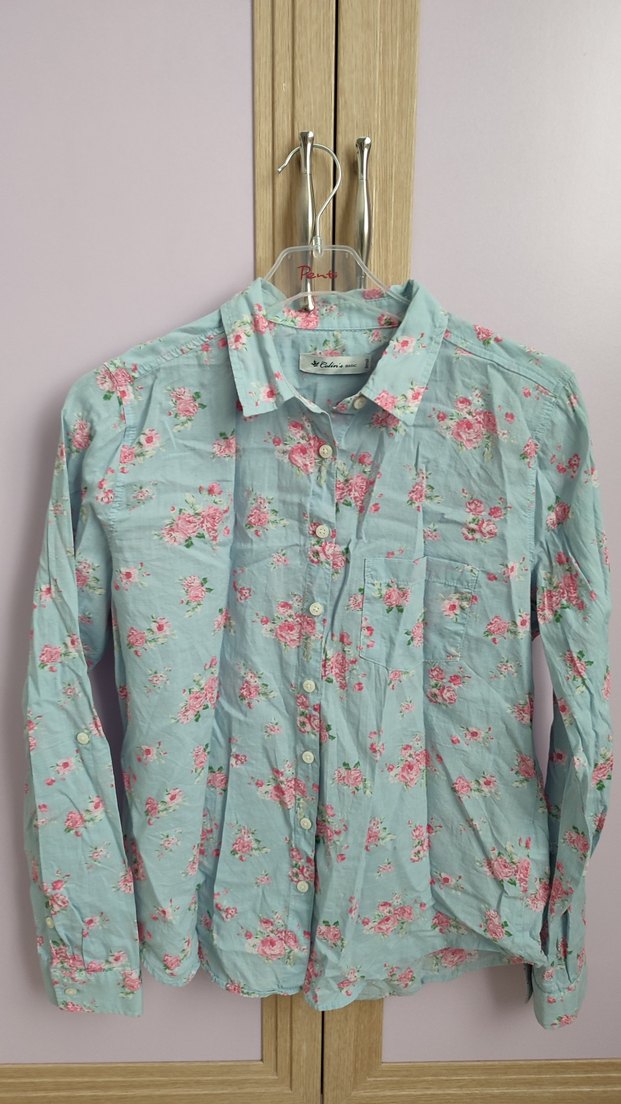 Colins marka, turkuaz çiçek desenli pamuklu gömlek, yakalı, uzun kollu. Sadece iki kez giyildi. Small Beden.