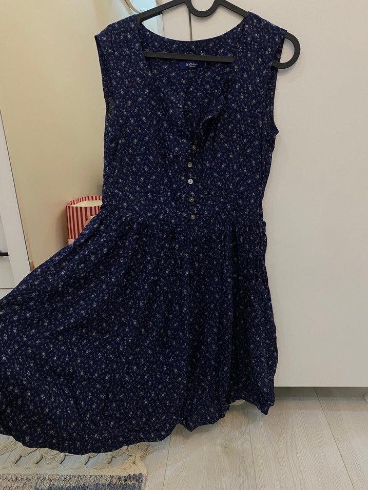 Yumuşak pamuklu kumaştan yapılmış, düğmeli bohem tarzda lacivert elbise. Sıfır ayarında