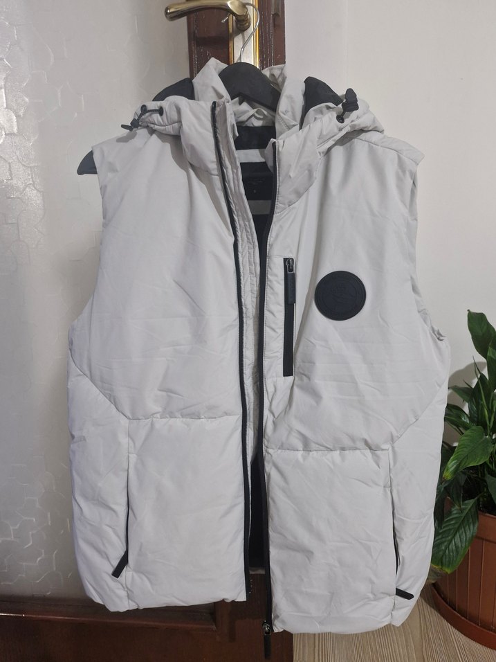 Erkekler için yüksek yakalı, fermuarlı cepli, orta uzunlukta ve dar kesim gri yelek. Yumuşak ve sıcak kumaştan, rahat ve şık athleisure tarzında. bir kaç kez giyildi bir sorunu yoktur. yeniden farksız. açık gri bej yakın bir renktedir. fazlaliktan satıyorum.