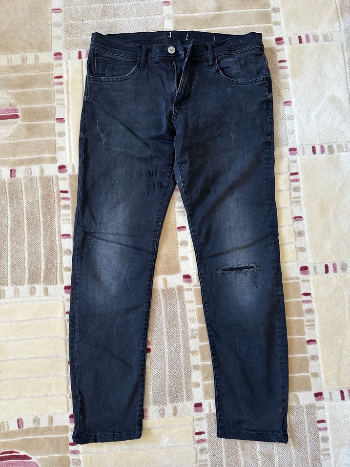 Bu erkek kot pantolonlar, regular fit kesime ve siyah denim kumaşa sahiptir.