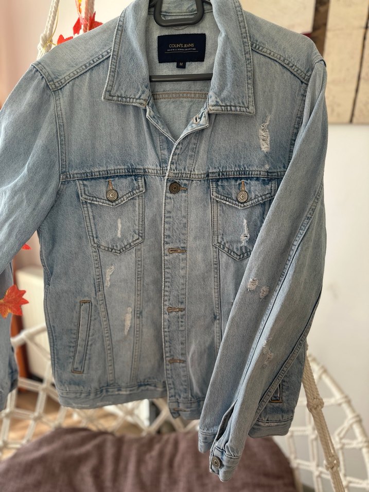 Colins Gri renkte, düğmeli, notched lapel yaka ve bol kesime sahip kadın denim ceket. Uzun kollu ve gündelik sokak stili için uygun, yıpranmış detaylar bulunur. oversize giyim için Erkek reyonundan alındı.