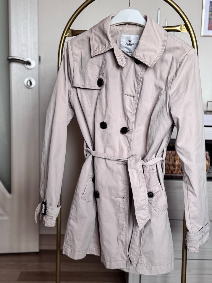 Bej renkli eski sezon kısa model Trenç lekesi yırtığı deformesi yok kullanmadığım için satışa koyuyorum.