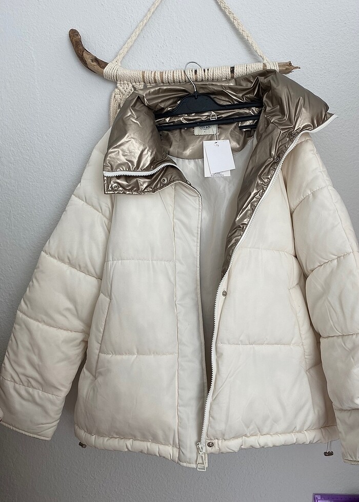 Eni 56 boyu 70 cm sorunsuz ekru renk mont hafif bir mont sıcak tutar oversize kalıptır s beden ama L beden giyen kişiye göredir.
