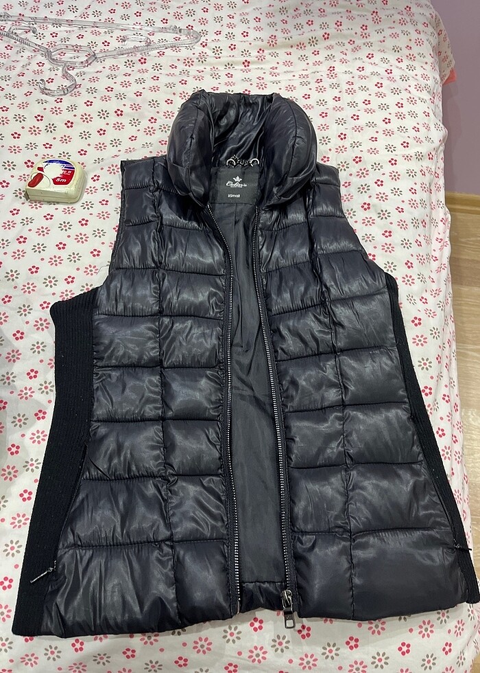 Kalın dokulu kaliteli duruşlu şişme yelek CEPLİDİR FERMUARLI CEPLERİ VAR tertemiz sorunsuzdur Xs ve s uyumludur esneyen kumaşı vardır yanlarında Dokusu kalitelidir sıcak tutan iri göstermeyen ürün Uzunluk 56cm