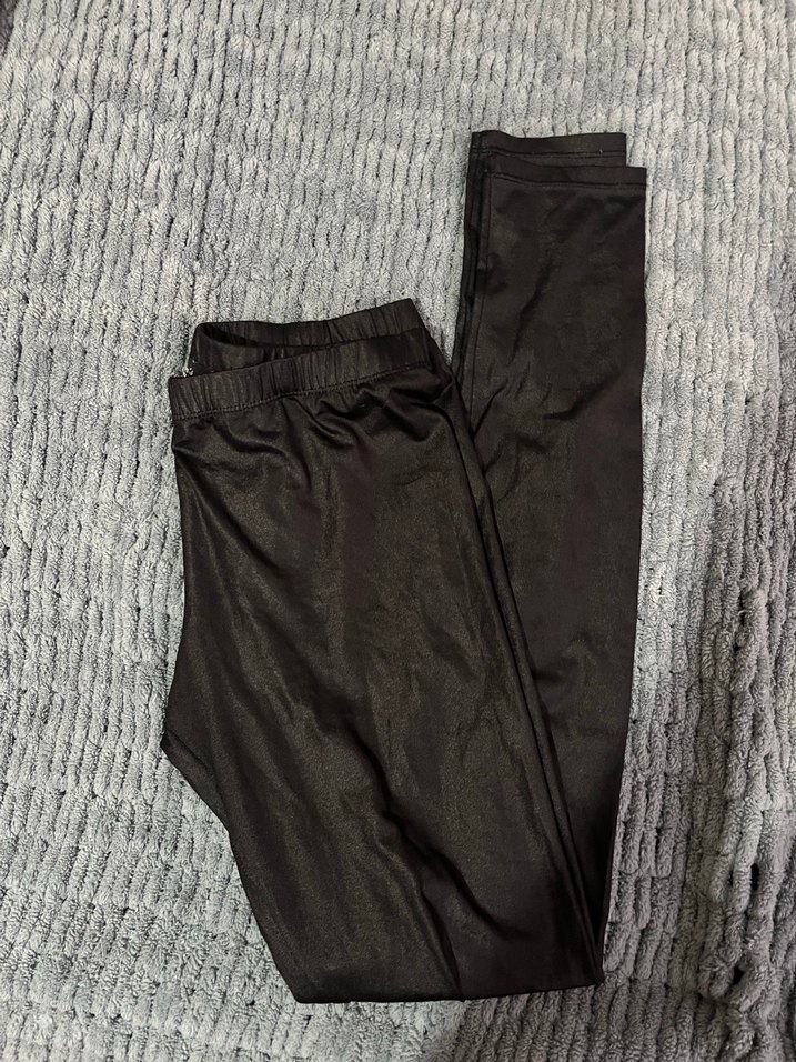 Düz siyah midi tayt, sentetik yumuşak kumaştan, günlük rahat kullanım için goth tarzı ve zahmetsiz şıklık sunar. Colins parlak tayt çok az kullanıldı