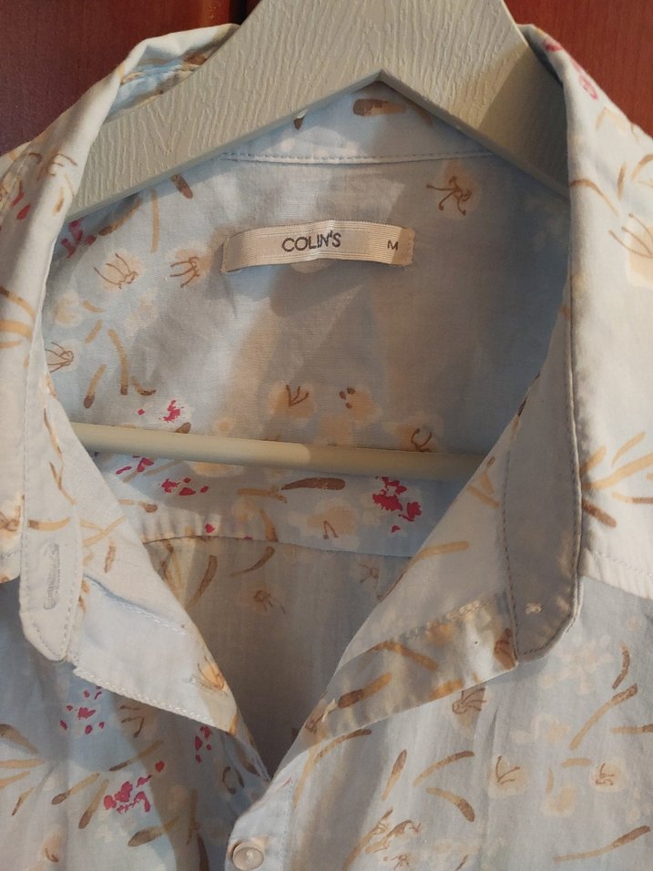COLIY'S markalı, pastel baskılı pamuklu gömlek. yakalı ve düğmeli tasarıma sahip, bol kesim ve normal boyda, vintage bohem tarzında günlük kullanıma uygun.