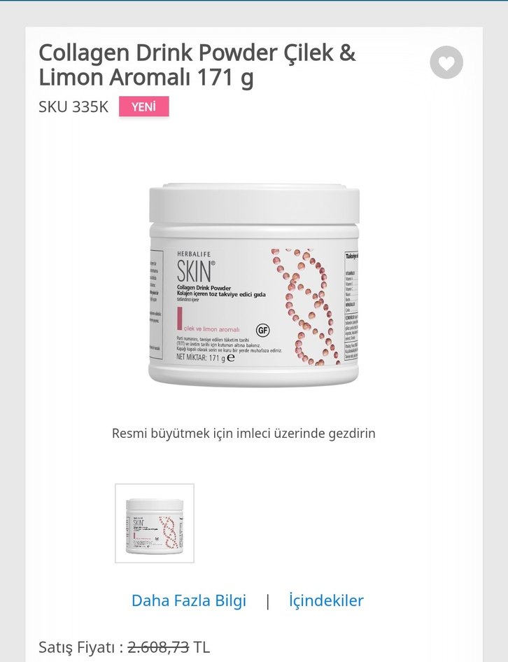 sıfır üründür. 2026 da yeni çıkan bir Herbalife kollajen toz, resimlerde tarif ve içerik mevcuttur. resmi şirket satış fiyatı ilk resimde belirtilmiştir fakat ben alış fiyatından satıyorum. 2600 liralık ürün normalde. kollajen miktarı diğer eczane ve market kolajenleri ile kıyaslanamaz. her kolajen bir değildir. hem kadın hem erkek her gün kullanabilir.