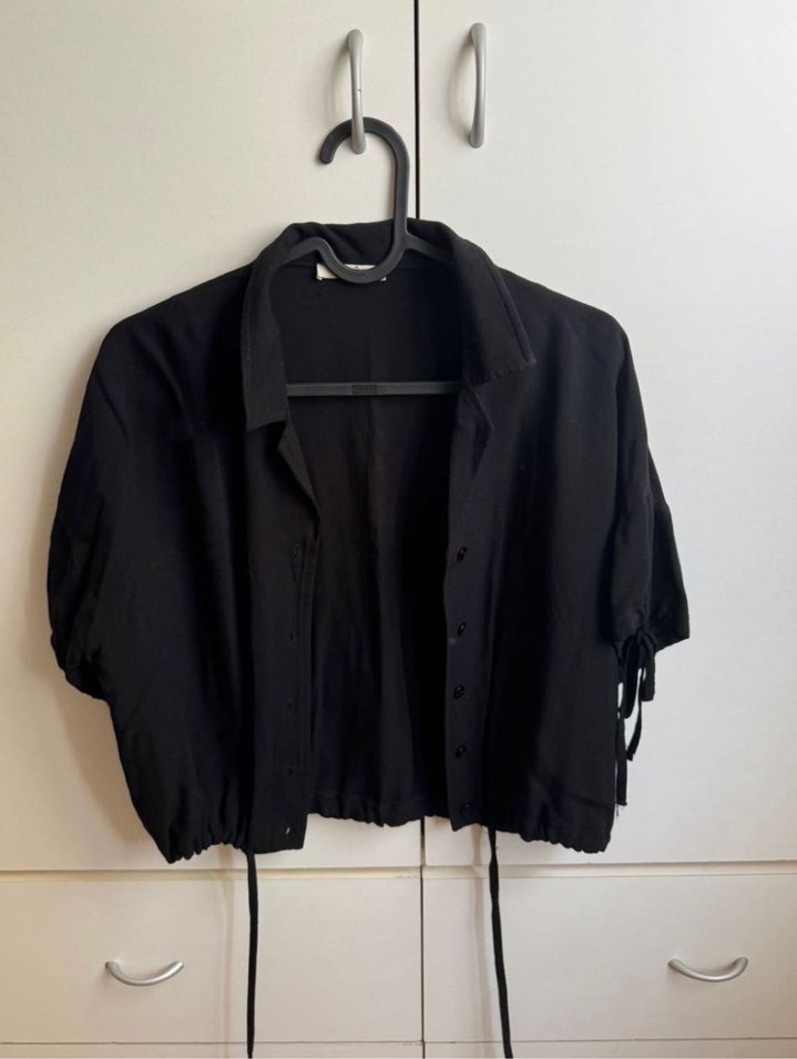 Az kullanıldı, hiç bir sorunu yok. Koltuk altı arası 48 cm, boy 47 cm, boyu beldedir. Viskon kumaştır. Bel ve koldaki ip detayları tercihe göre çıkarılabilir. #gömlek #collezione #collezionebluz #siyahbluz #bluz