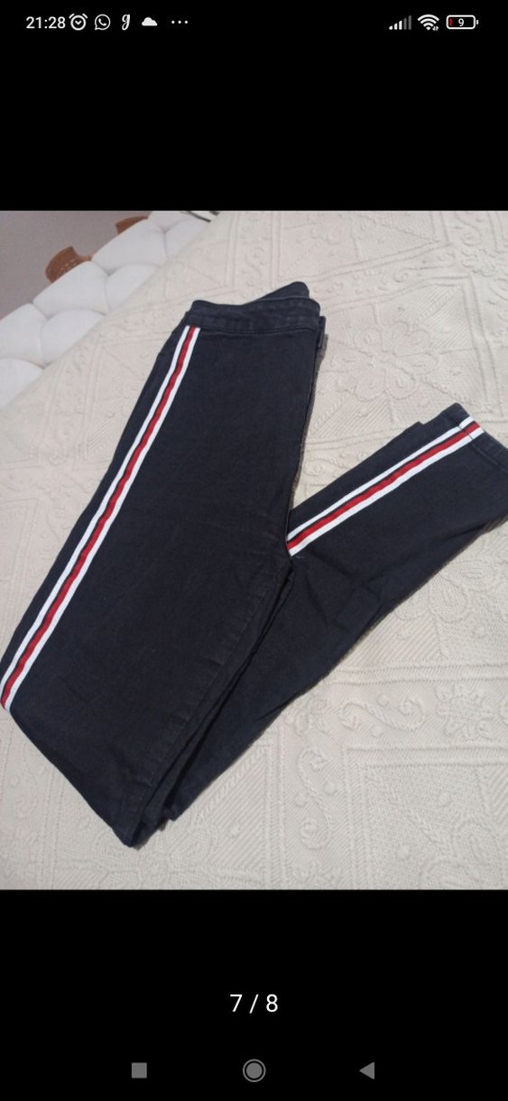 Collezione kot Jean pantolon 38 füme likralı boy 93 bel 38 az kullanılmış 38/30Elastik bel bantlı, yanları çizgili siyah denim kadın pantolon. Midi boy ve dar kesim, günlük şıklık için ideal.