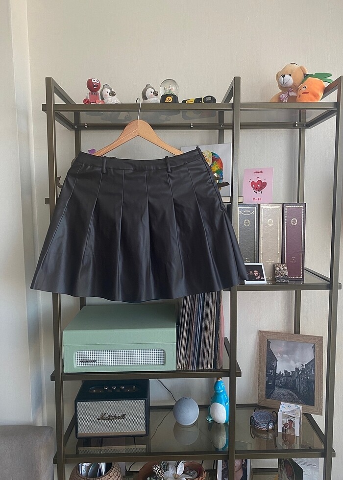 Collusion marka (İngiltere'den aldım) 40 beden pileli suni kahverengi etek. Hiç giyinmedim.