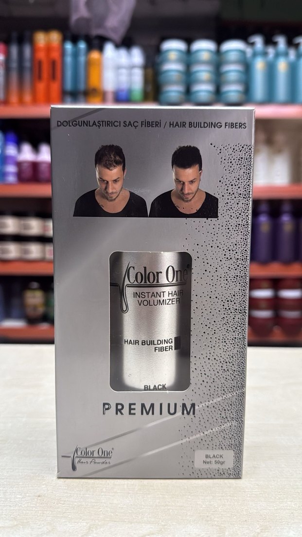 Color One siyah saç dolgunlaştırıcı fiber, seyrek saçlara anında hacim ve dolgunluk sağlar. Premium kalite, doğal görünüm sunar.