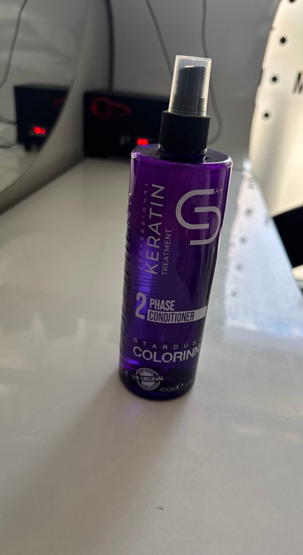Colorinn Keratin içeren 400 ml iki fazlı saç kremi, saçlara pürüzsüzlük ve bakım sağlar. ♀️kokusu çok güzeldir kolay taramada %100 etkili sıfır ürün hiç kullanılmadı ve orijinaldir