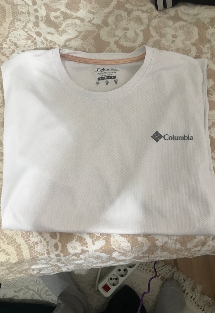 Columbia markalı beyaz, pamuklu erkek tişörtü, yuvarlak yaka ve kısa kolludur. Gri baskılı logo ile rahat ve şık bir görünüm sunar. Günlük kullanıma uygundur.