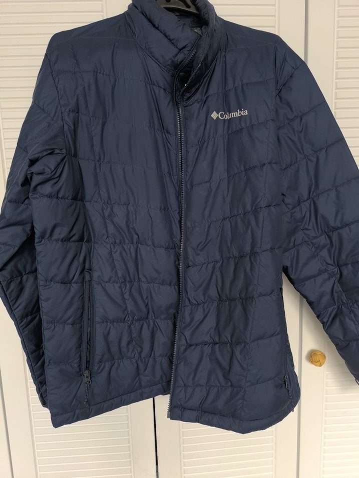 Columbia markalı, fermuarlı, normal boyda ve uzun kollu lacivert mont. Yumuşak ve sıcak kumaştan, günlük kullanıma uygun.