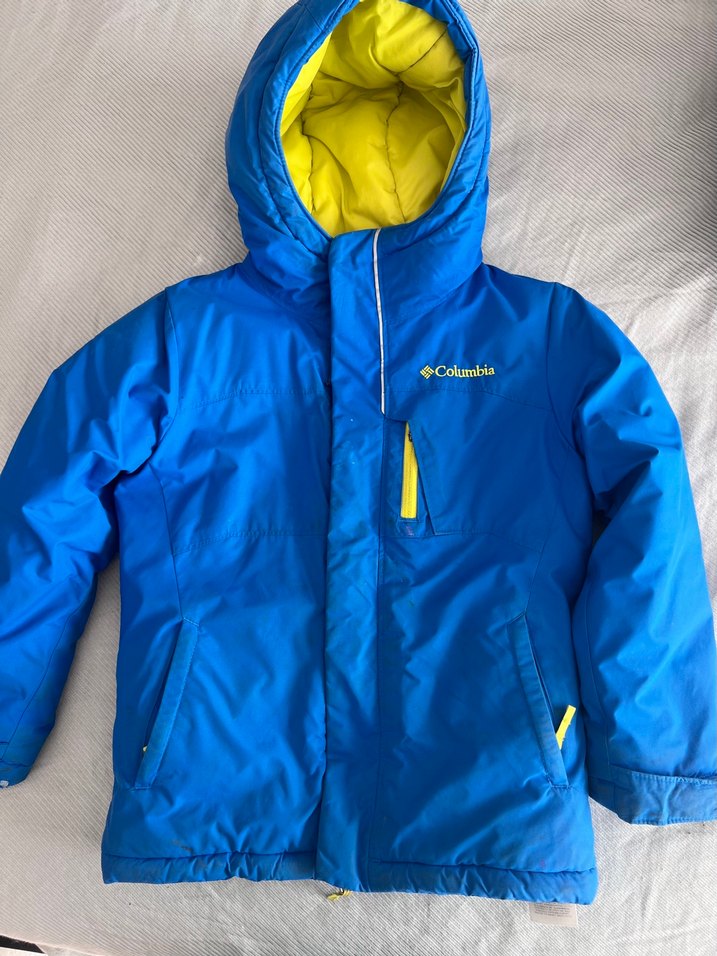 Columbia markalı, fermuarlı cep detaylı, uzun kollu ve normal midi boyda, parlak mavi renkte, atletik kesim. Kalın bir monttur, kayak ceketi olarak kullanılır. Hiç bir kusuru yoktur. Bedeni xxs 4/5 yaş
