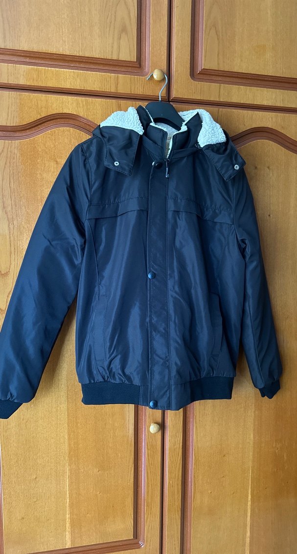 Fermuarlı ve çıtçıtlı, normal boy, uzun kollu erkek siyah mont. Fermuarlı tak çıkar kapşonlu. Her tarza uygun, rahat ve peluşlu iç astarlı.