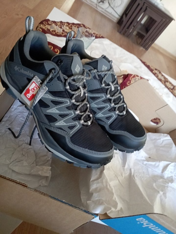 41 numara. sıfır. Columbia gri baskılı erkek outdoor ayakkabılar, kauçuk tabanlı ve bağcıklı, trend sokak giyimi için uygundur.