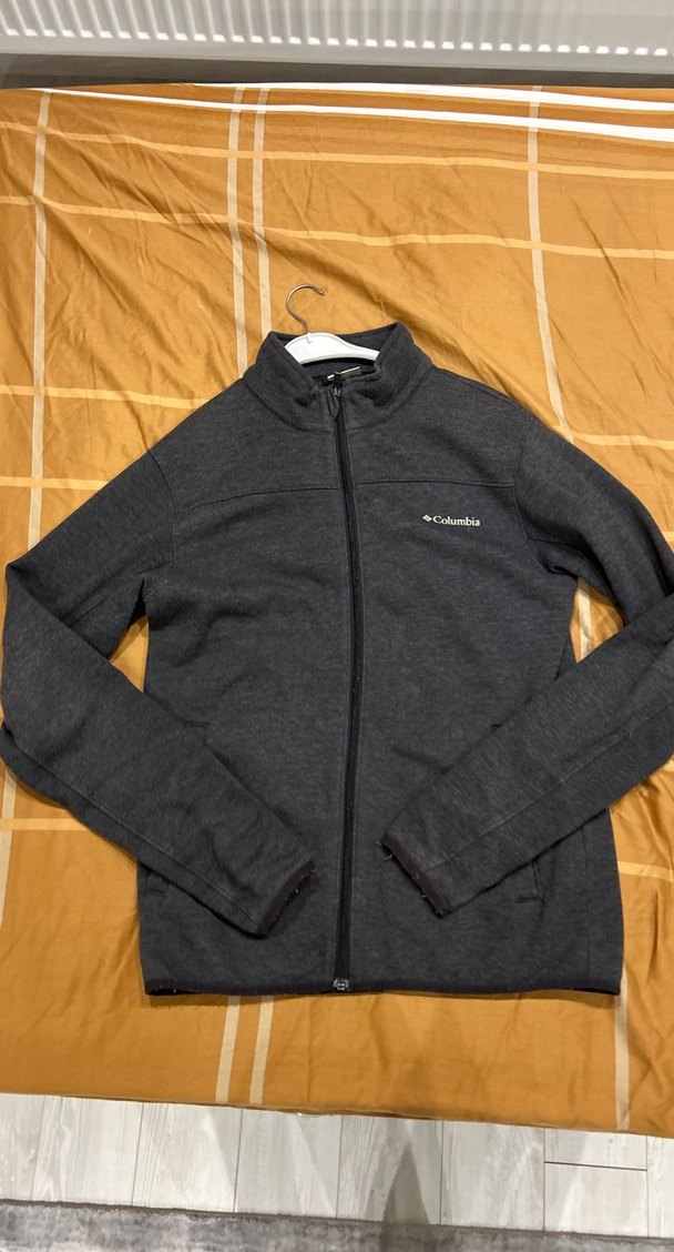 Fiyatta anlasırız orjinaldir. Columbia markalı gri fermuarlı, uzun kollu, yüksek yakalı, normal boyda erkek polar. Günlük kullanıma uygun rahat athleisure stilinde.