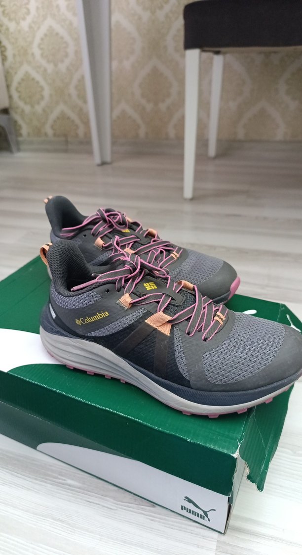 Columbia markalı, gri renkli kadın spor ayakkabısı. Kauçuk tabanlı, baskılı desenli ve velcro özellikli, spor ve günlük kullanıma uygun. 2-3defa kullanıldı