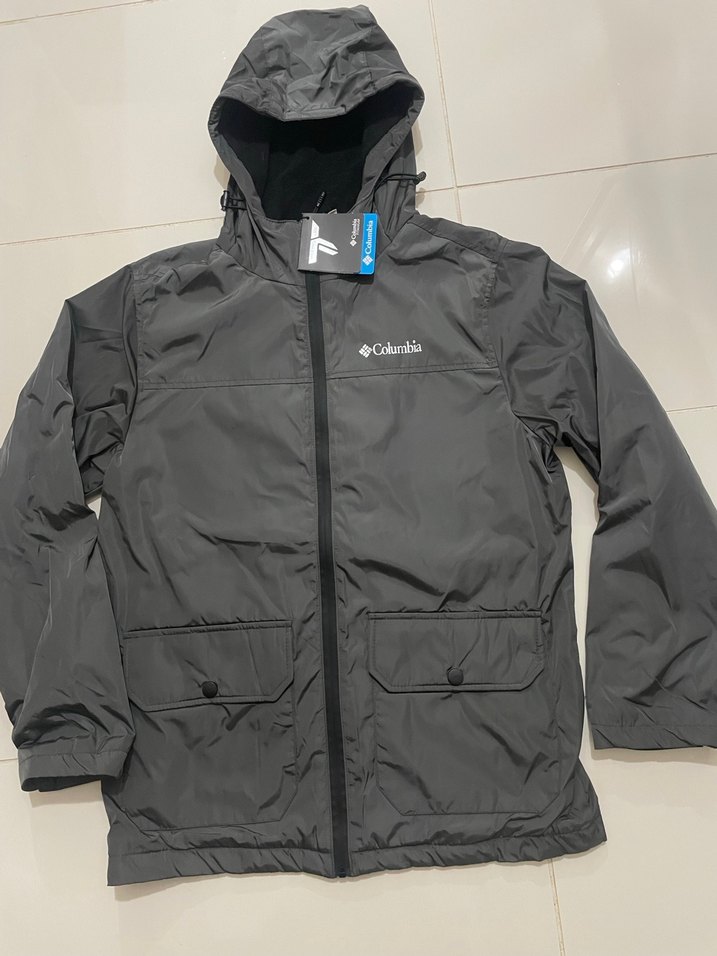 Columbia markalı gri mont, kapüşonlu ve fermuarlı ön yapıya sahiptir. Uzun kollu, normal boy ve rahat kesimdir. İki cep ve baskılı logo bulunur. İçi polardır.