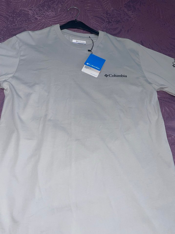 Pamuklu, gri, kısa kollu, yuvarlak yakalı, bol kesim Columbia baskılı tişört. Outdoor kullanıma uygun rahat stil.