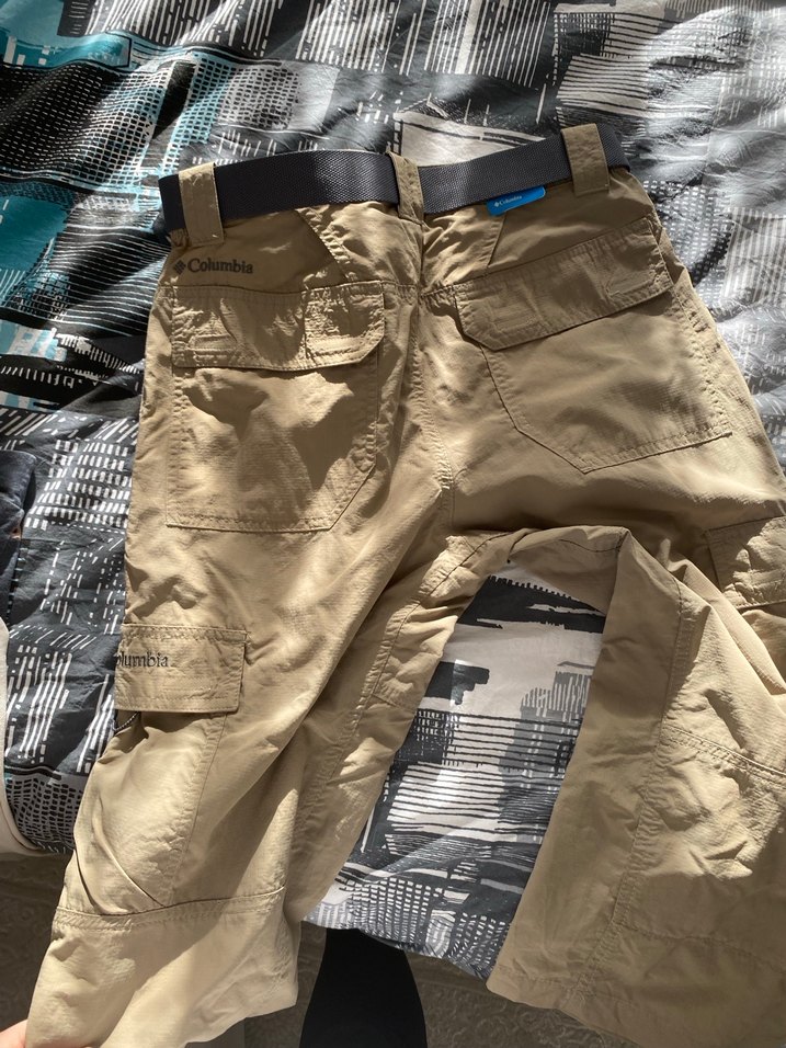 Columbia markalı, kemerli, kahverengi, sentetik kumaştan yapılmış, normal midi boy, sokak tarzı erkek kapri şort . Beden uymadığı için hiç giyilmedi . Sıfır ürün