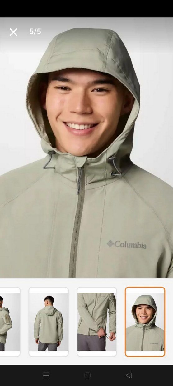 Columbia markalı, kapüşonlu ve fermuarlı, bej renkte erkek mont. Yumuşak ve sıcak kumaştan, normal boyda, sokak stilini yansıtan rahat bir model.