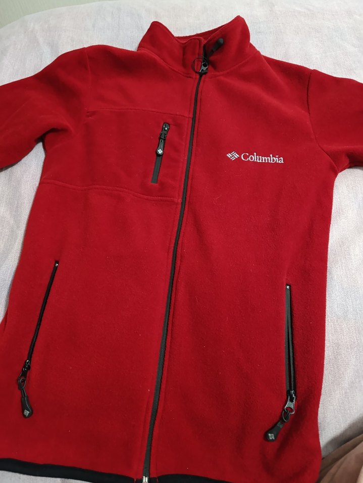 Columbia markalı kırmızı polar, uzun kollu ve fermuarlı. Fitted kesimi ve crew neck yakasıyla dış mekanlar için uygun, şık ve rahat bir parça.