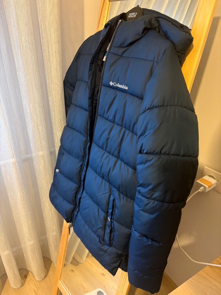 Columbia markalı, koyu lacivert kapitoneli, fermuarlı cepli, yumuşak ve sıcak kumaştan yapılmış, midi boy ve kolsuz erkek mont. Çocuk bölümünden almıştım genç bölümünden. erkek çocuk bölümünden aldım.